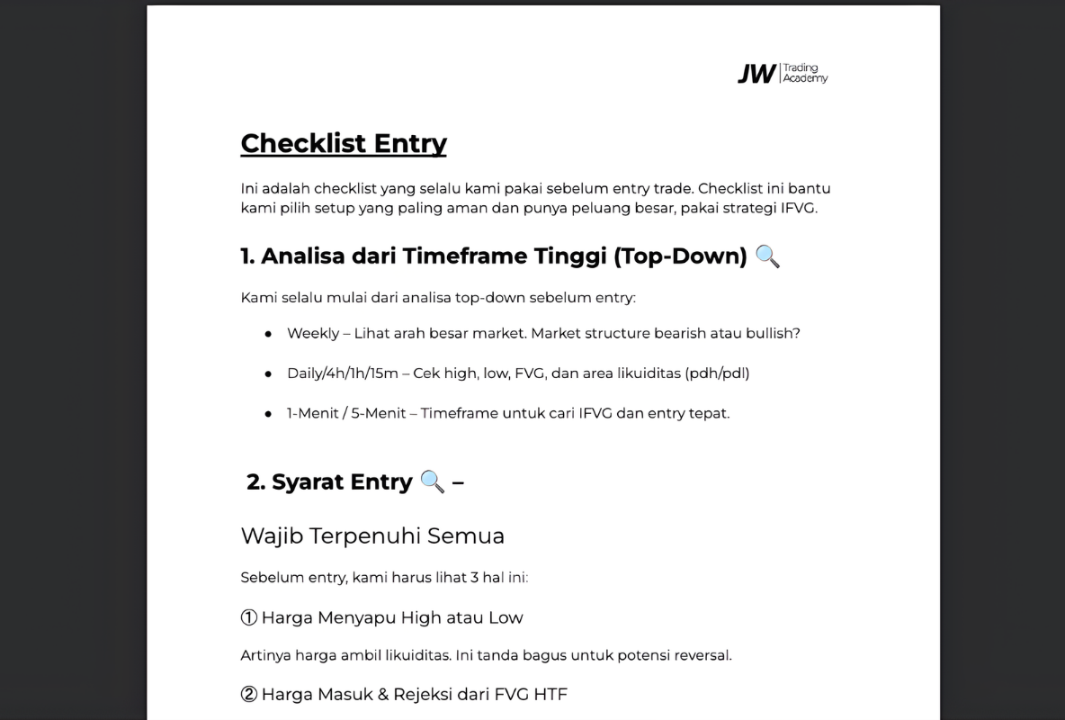 Mempelajari model entry IFVG dengan kriteria dan kondisi yang jelas.
