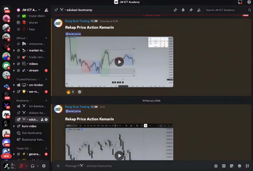 Lihat langsung cara kami mengajar, struktur materi, dan pendekatan trading yang digunakan di bootcamp.