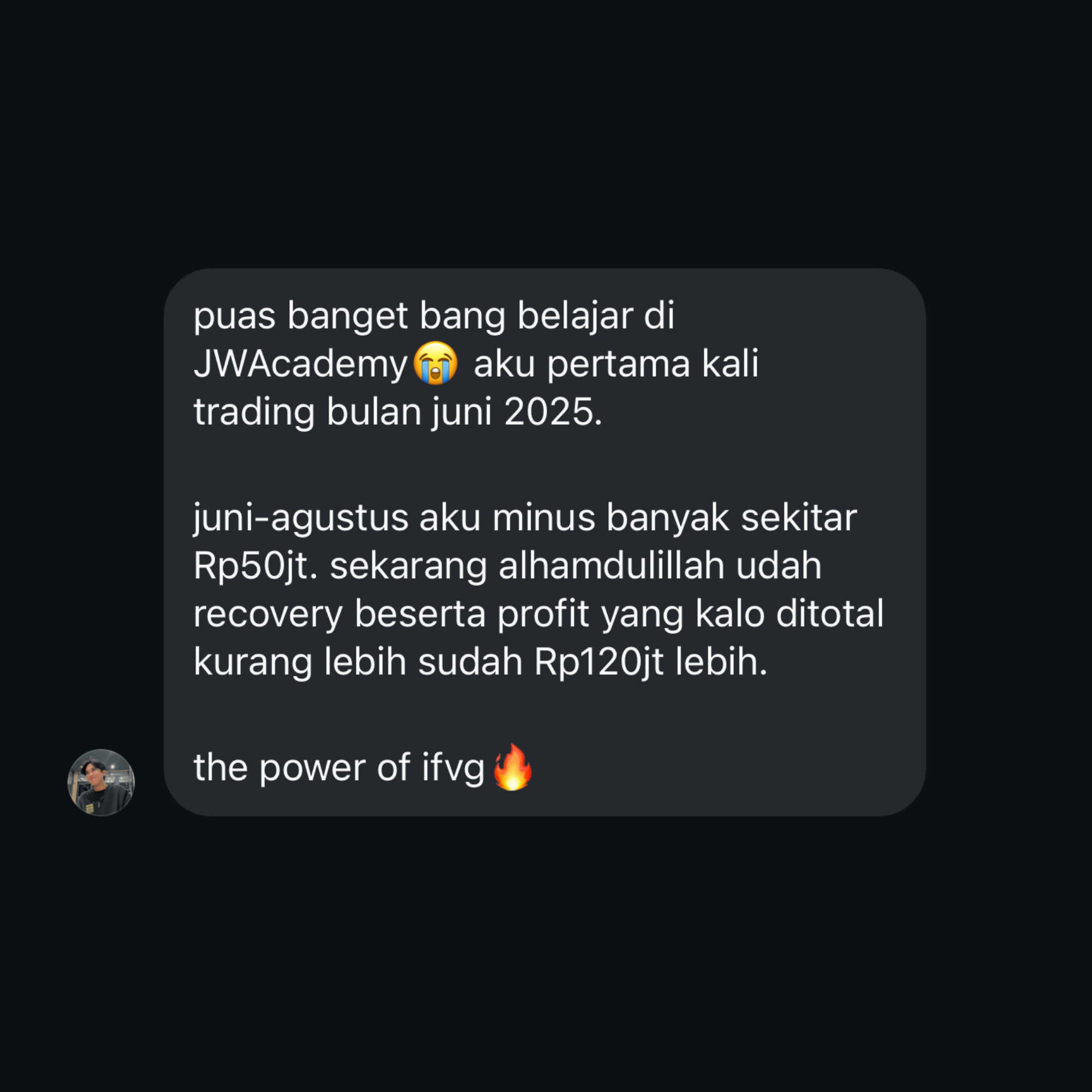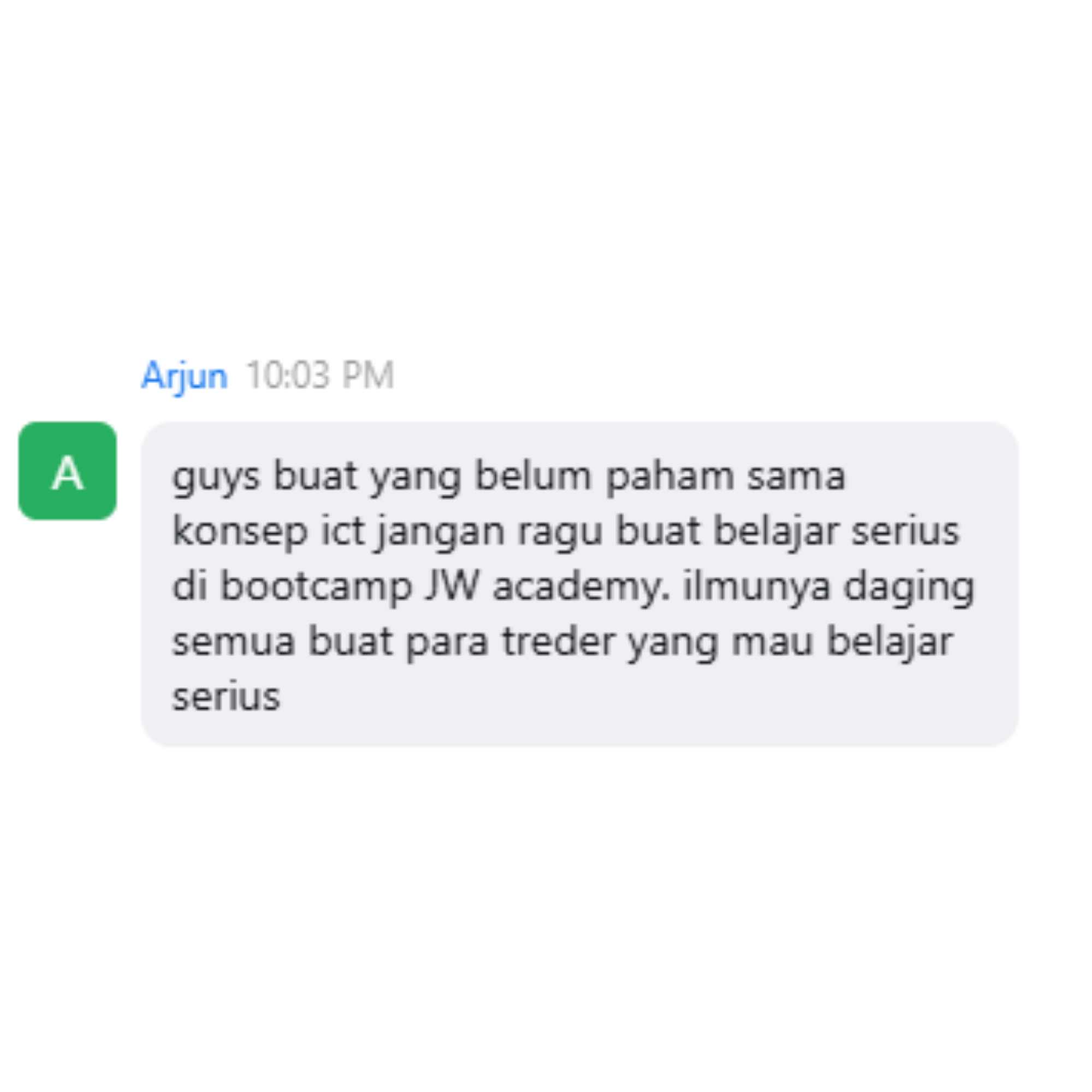 JW Bootcamp adalah program edukasi trading ICT yang dirancang untuk membantu kamu belajar dengan arah yang jelas.